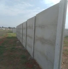 Muro pré-moldado com altura de 1,80m sendo composto por 3 placas de 1,60m largura x 60cm altura x 3cm espessura e mourão de 2,40m de altura x 12cm espessura x 12cm espessura aprofundados 60cm no solo para cada peça.